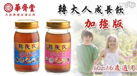 平均每盒最低只要298元起(含運)即可享有【華齊堂】轉大人成長飲加強版3盒/5盒/10盒(60mlx10瓶/盒),款式:小少爺/小公主。